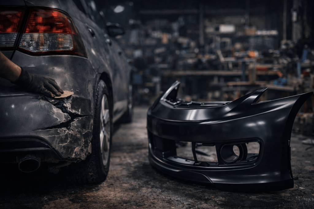 קודם בודקים אם ניתן לשפץ ולתקן את הפגוש בצורה מקצועית ובטוחה ורק אם צריך, מציעים גם החלפה מלאה לפגוש חדש.